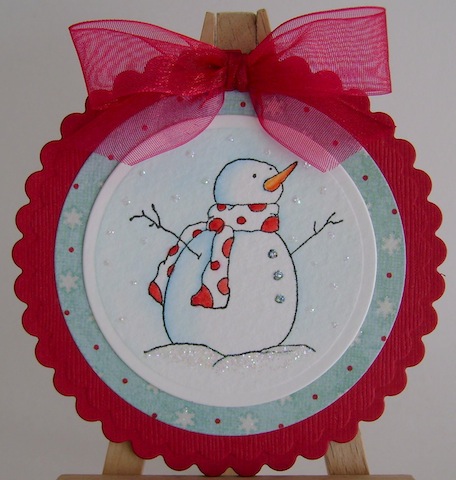 i cased a circle card from kathy, queen for the day at splitcoaststampers. since i had scraps left over from my last christmas card, the red/white/blue that was growing on me, i made another. i surprised myself – i haven’t been feeling very creative while i’m in the process of switching over to a mac. i had a long list of favourite blogs to visit for inspiration and haven’t yet been able to export them. thanks for popping by.