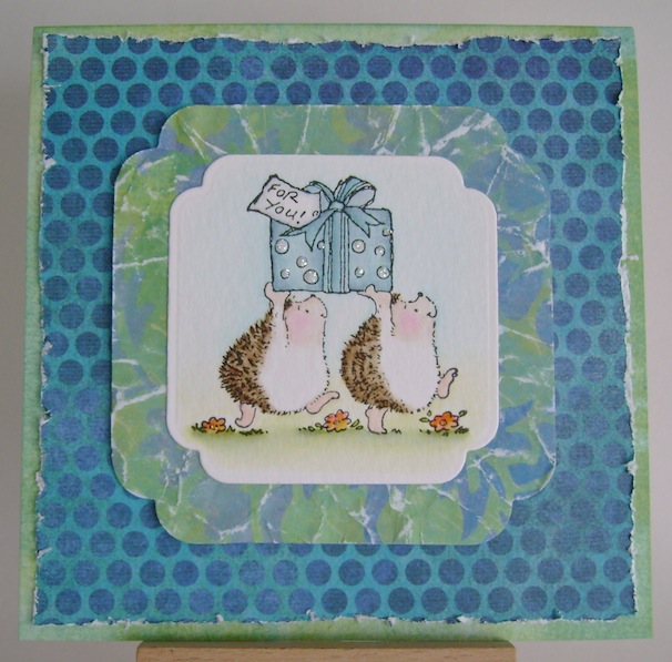 This is just too cute! I love blue and green together and you know I love those hedgies :) The stickles on the wrapping paper is perfect.