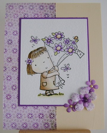 i made this for Lili of the Valley Challenge 59, another lovely sketch by DT member BEV. the image is watercoloured, the pink strip embossed and the yellow strip punched. thanks for popping by.