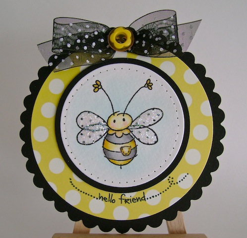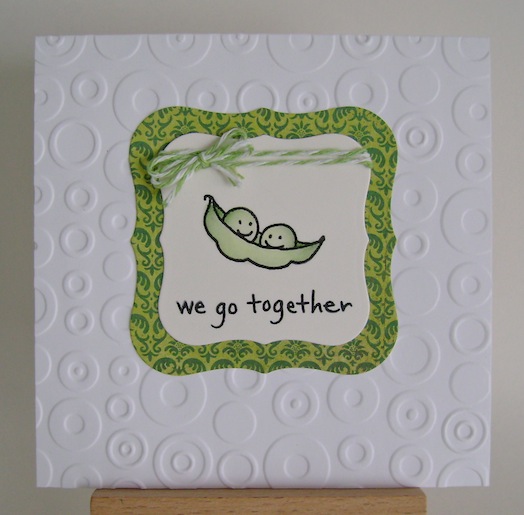 i painted the small stampendous image with twinkling H2Os on Arches hot press watercolour paper and attached it to a green vellum-like circle mat. the sizzix tim holtz holly die separates pieces so i die cut through the white cardstock, attached a green shimmery vellum-like rectangle behind it and then taped that piece to the card base. i thought it would be faster than inlaid holly because i made 12 cards. to finish it off i stamped a Clearly Besotted sentiment. i added glossy accents to the buttons but resisted adding glitter to the cuffs and pom pom because some bunnies like paper and touch their noses to it.